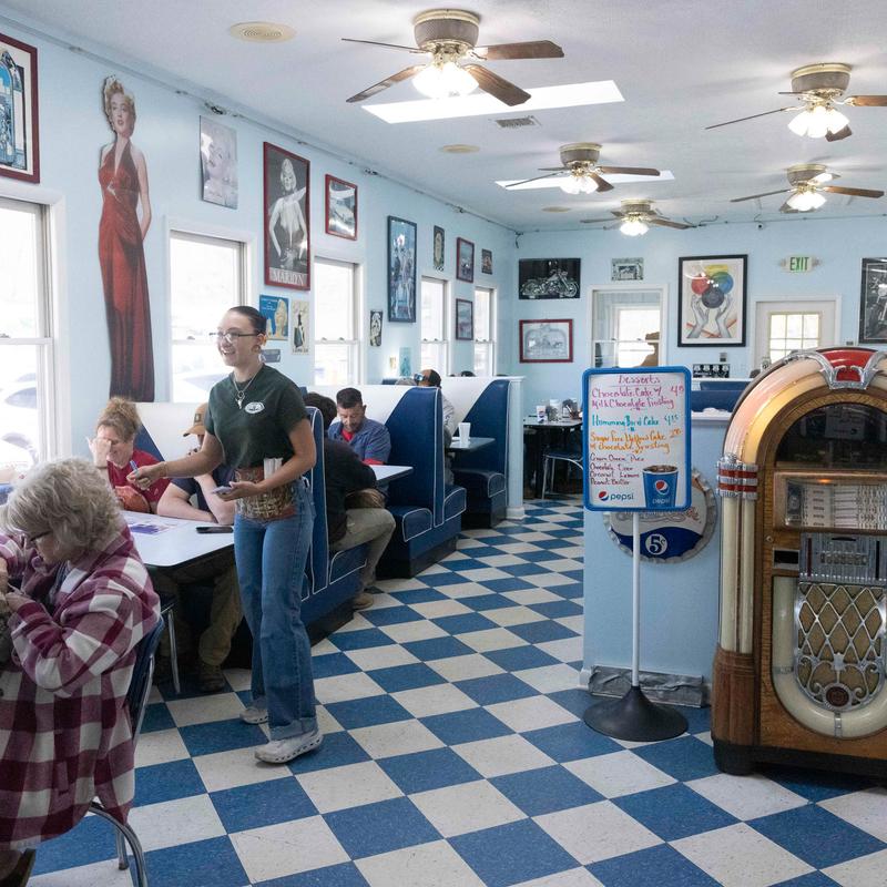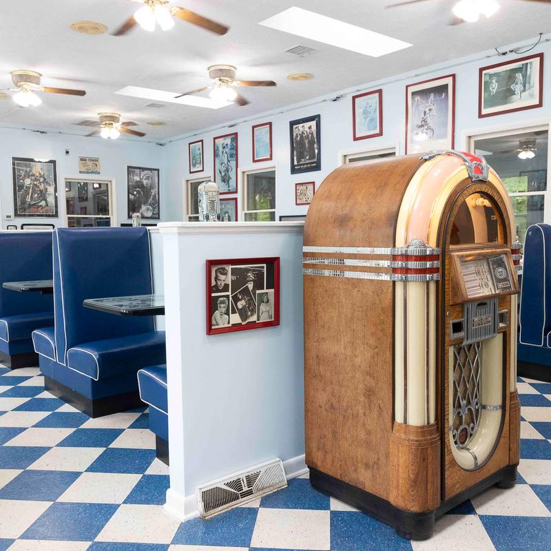 The 50s diner atmosphere is so fun. The food is delicious. My favorites are the chicken strips, mashed potatoes and gravy, macaroni and cheese, okra and sweet tea.